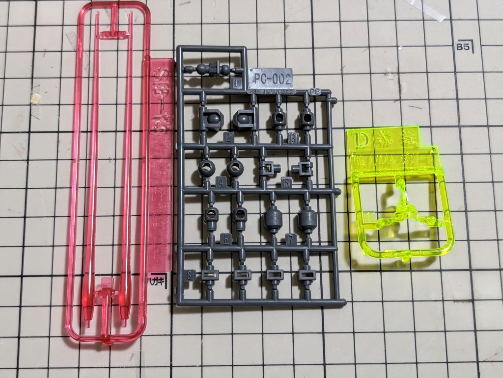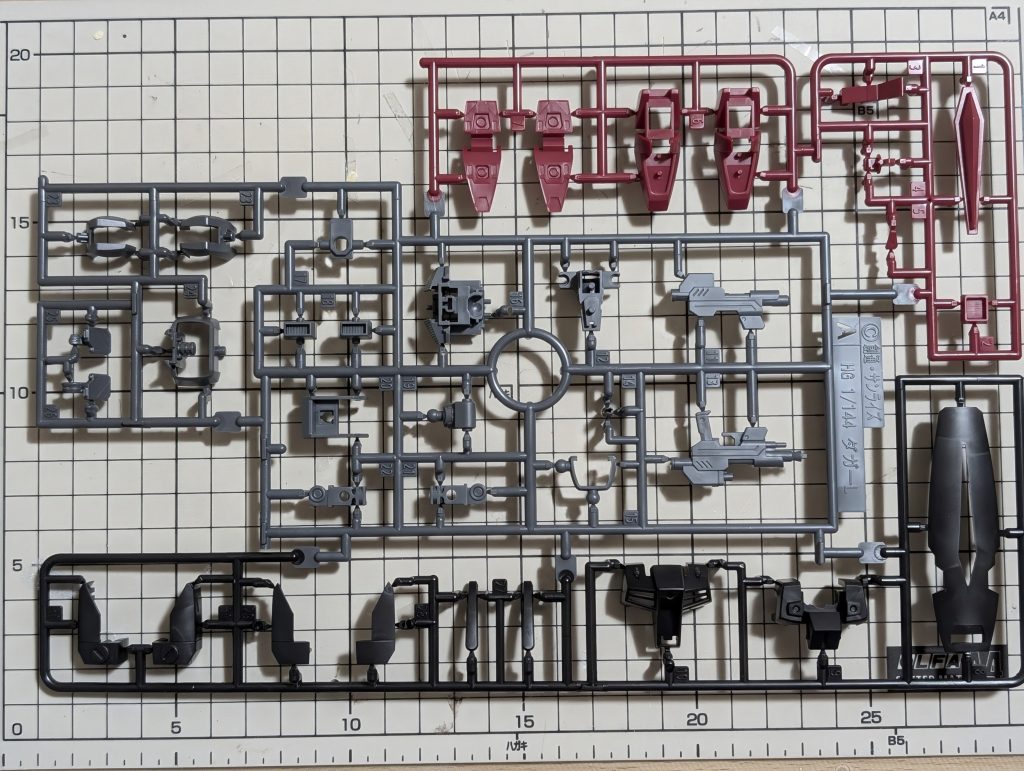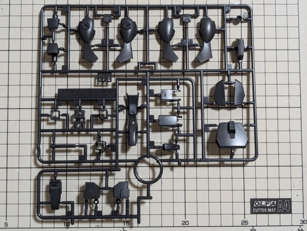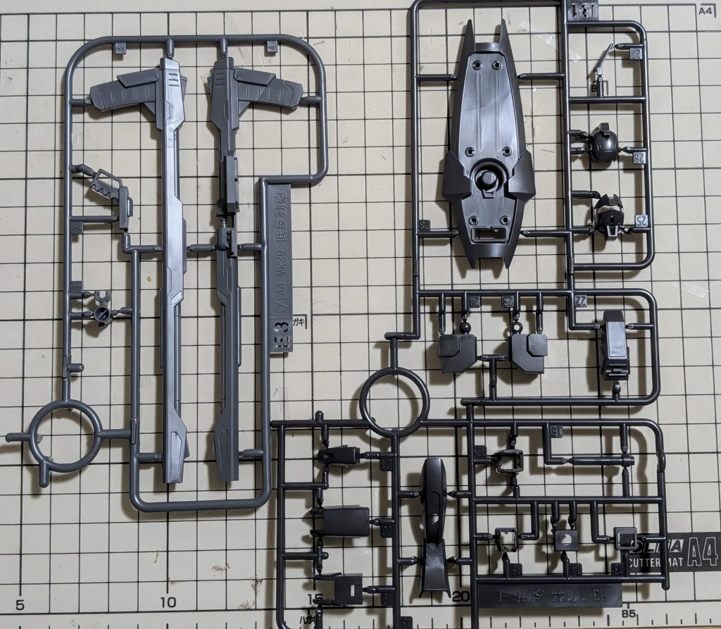 ランナー構成もシンプルなものになっていて、新規造形ランナーの表記が「MK39 低反動砲」となっているところが、ご愛敬ポイントです。関節にはビルドシリーズのランナーが仕様されているので、可動域が優秀ということが約束されています。そのほかは。「ダガーL」と同じパーツとなっています。