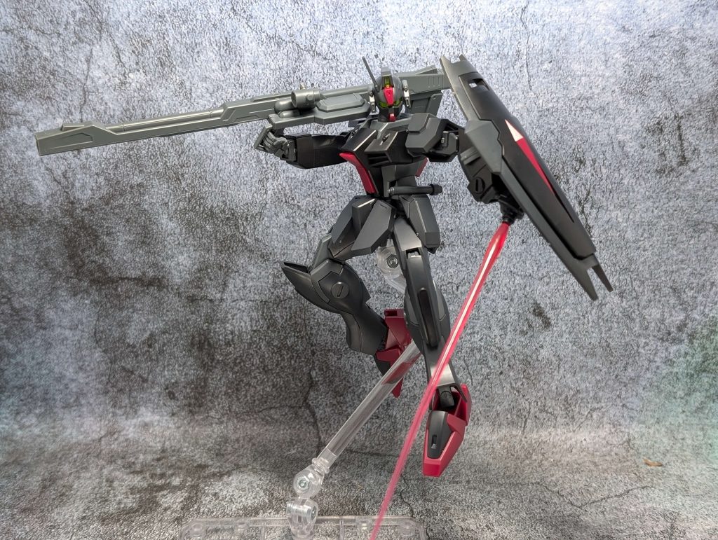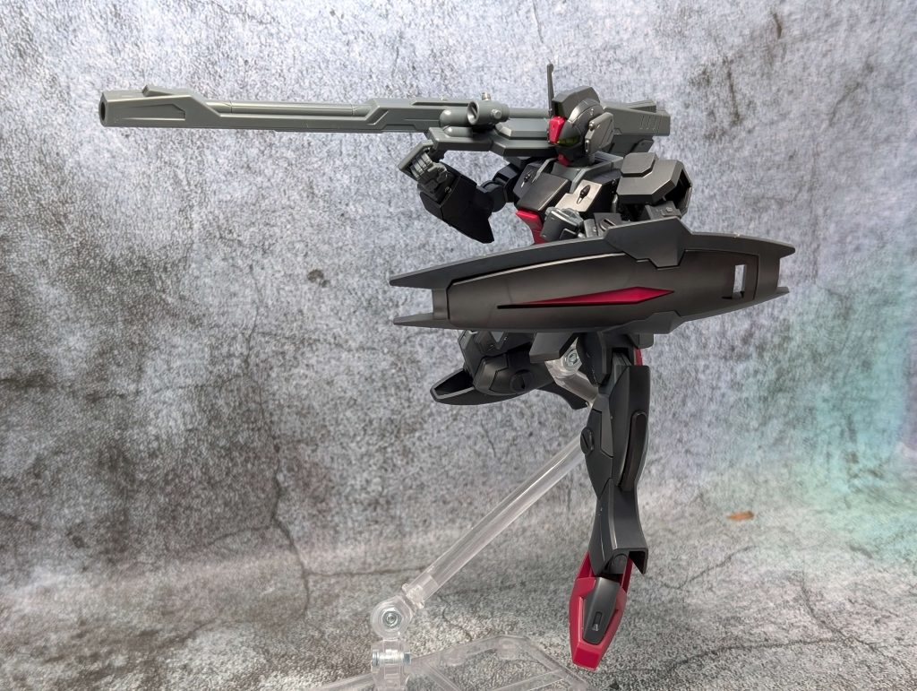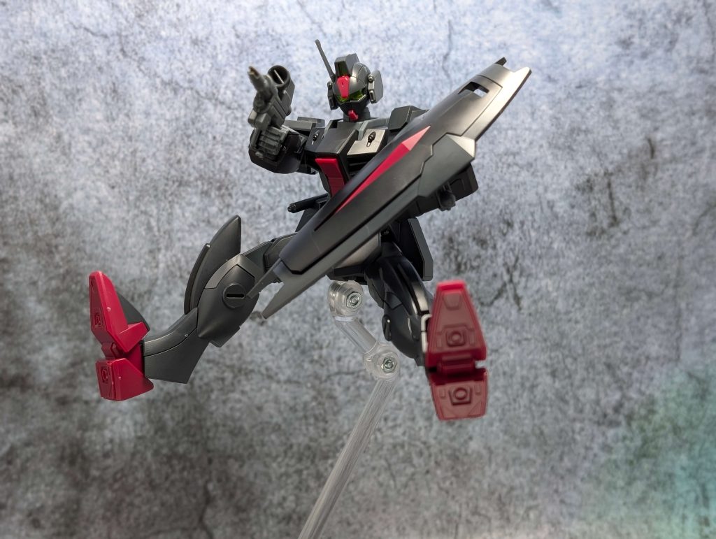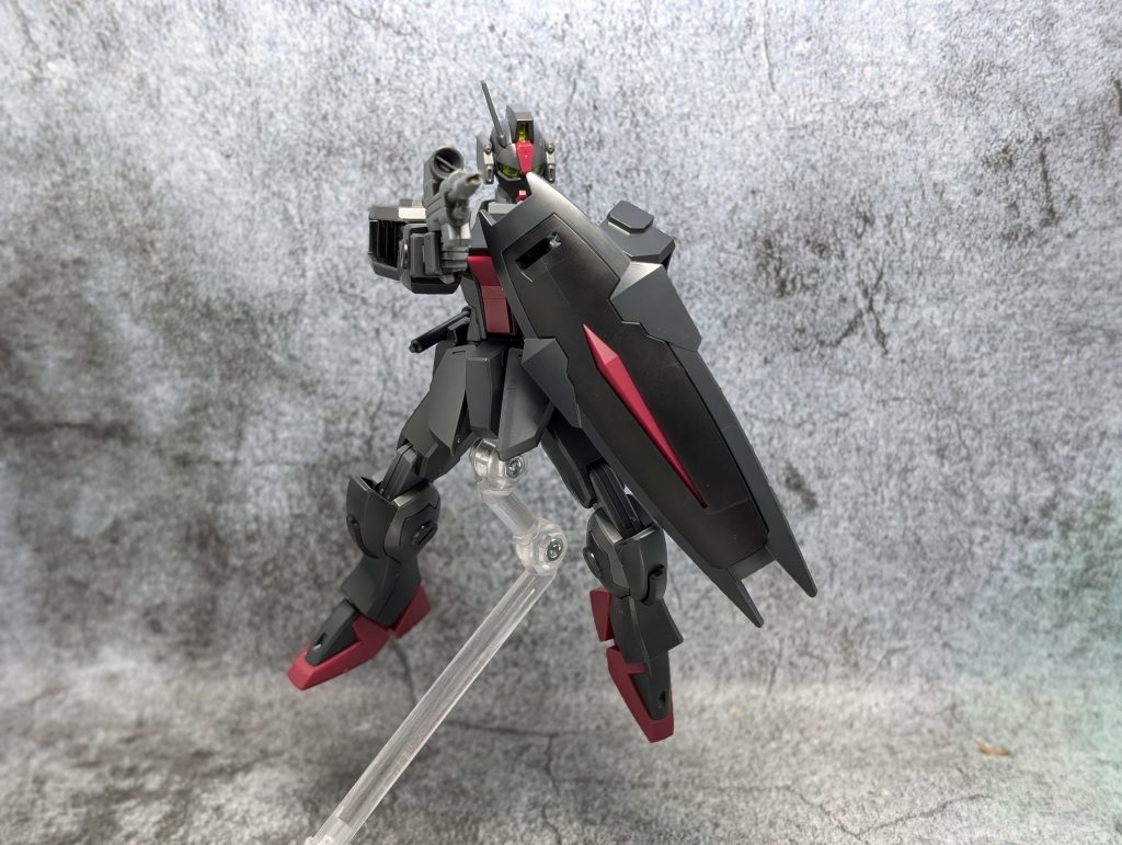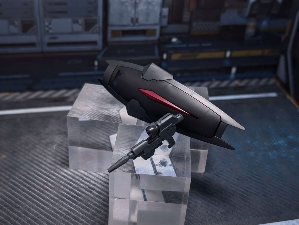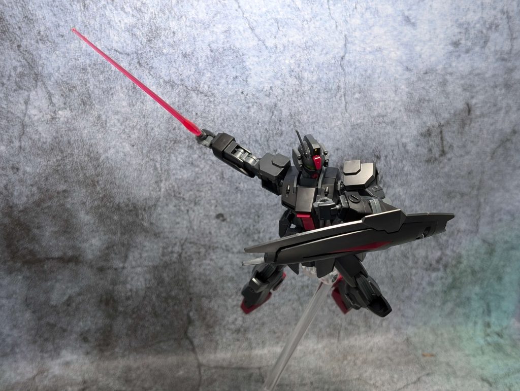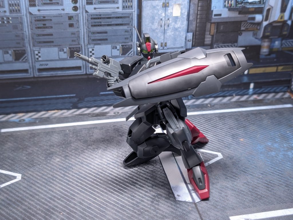 ちなみに所属は「ファントムペイン」となっていて、アーモリーワン強奪戦に参戦した機体です。カラーリングは宇宙空間の視認性を抑えたカラーリングとのこと。