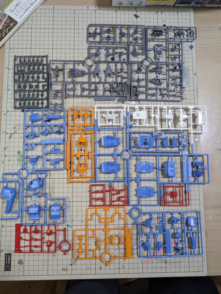 ホビーハイザックは青赤橙のトリコロールカラーで趣味要素の高いカラフルな機体ですが、全体的にパーツ分割でかなり細かく色分けされています。パーツの配置も組み立てやすいように配置されているので、ユーザーフレンドリーさを感じます。