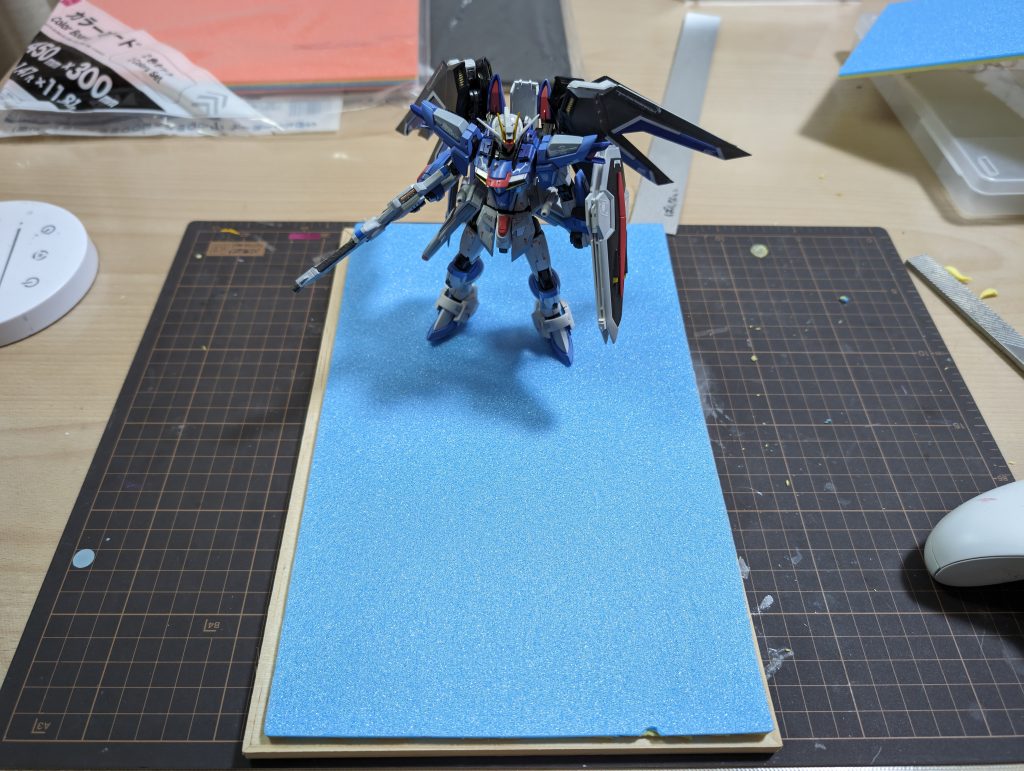 最近は写真フレームとカラーボードを100円で用意して、ディスプレイベースの制作に着手したところです。