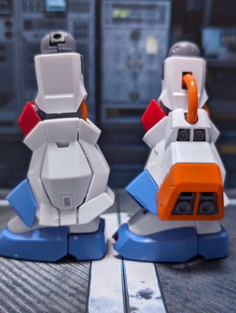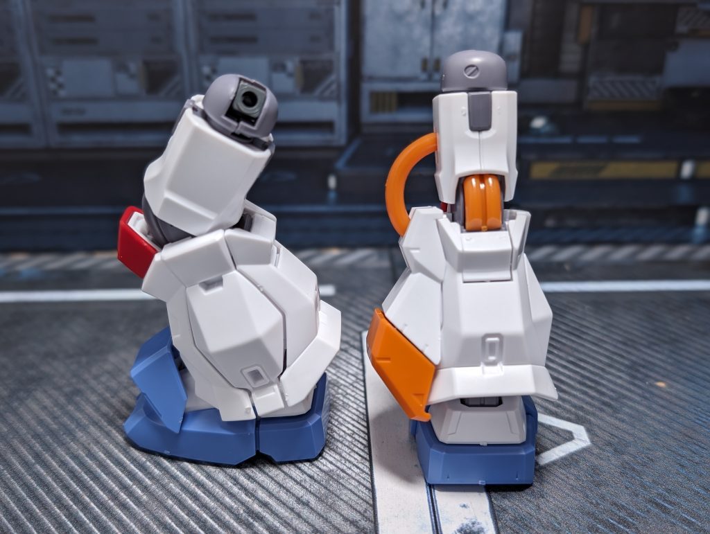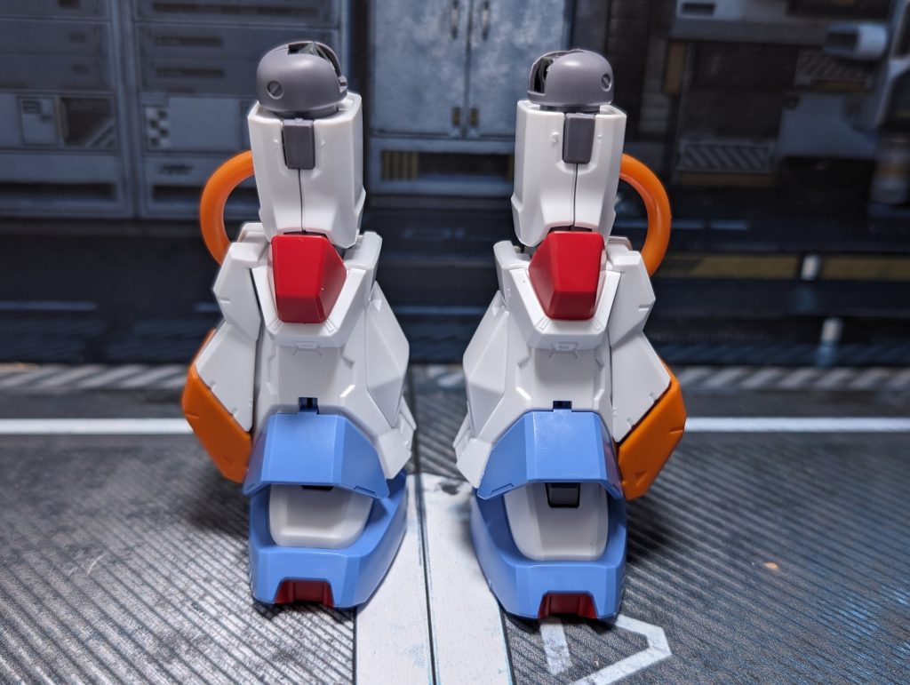 続いて脚部ユニットです。ブロック状でゴツく、太太しいデザインですが、配色も相まって柔らかな印象があります。合わせ目も段落ち処理されているので、よくできた構造となっています。