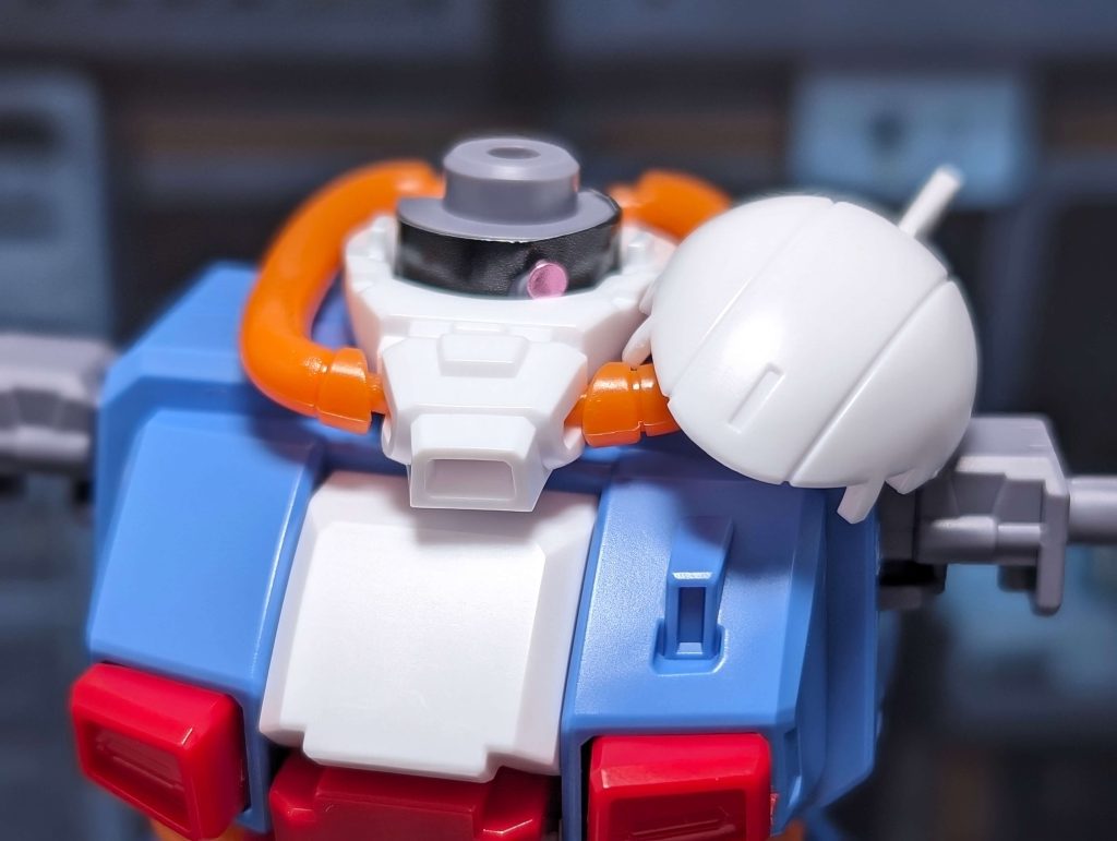頭部上部を外してモノアイ部分を可動させることで、メインカメラの位置を調整できます。