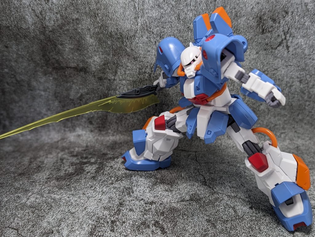 可動範囲は広く、様々なポーズを取ることができます。特に腕と脚の関節はしっかりと動き、アクションポーズも自由自在です。ザクシリーズの素体としてはとても優秀だと思います!